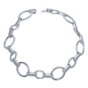 14K White Gold Link Bracelet with Diamond Bar Connectors