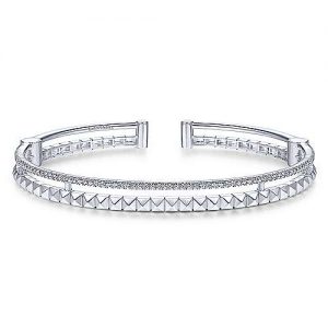 14K White Gold Split Cuff with Pyramids and Diamonds