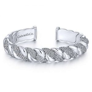 14K White Gold Twisted Link Diamond Pavé Cuff Bracelet