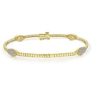 14K Yellow Gold Tennis Bracelet with Marquise Cluster Diamond Stations