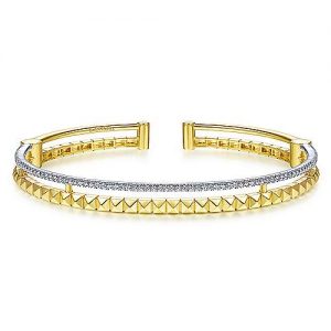 14K Yellow-White Split Cuff with Pyramids and Diamonds