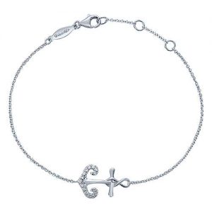 925 Sterling Silver Chain Bracelet with White Sapphire Anchor Charm