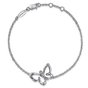 925 Sterling Silver Chain Bracelet with White Sapphire Butterfly Charm