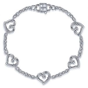 925 Sterling Silver Chain Bracelet with Diamond Cutout Heart Charm