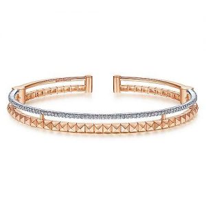 14K Rose and White Gold Split Cuff with Pyramids and Diamonds