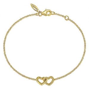 14K Yellow Gold Chain Bracelet with Entwined Hearts