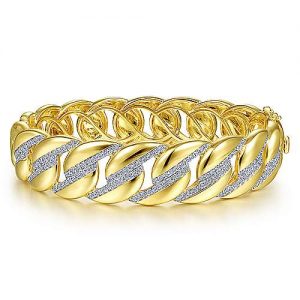 “14K Yellow Gold Twisted Link Diamond Pavé Cuff Bracelet” has been added to your cart.