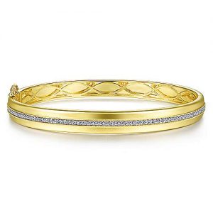 14K Yellow Gold High Polished Bangle with Diamond Inner Channel