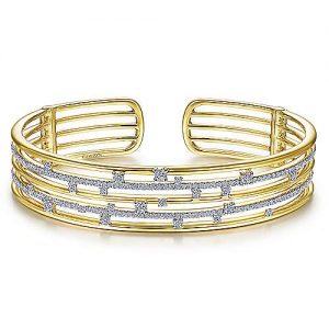 14K Yellow Gold Multi Row Cuff Bracelet with Diamonds