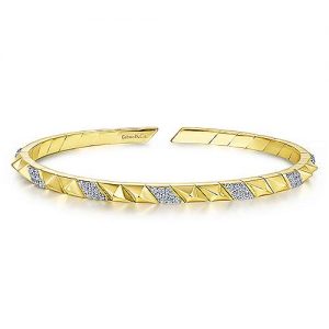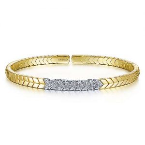 14K Yellow Gold Chevron Cuff Bracelet with White Gold Diamond Pavé Station