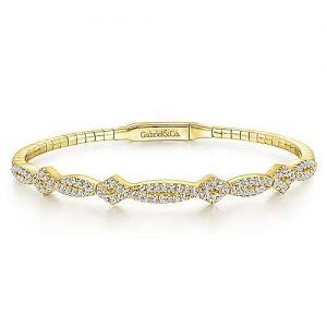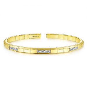 14K Yellow Gold Cuff Bracelet with Diamond Pavé Stations