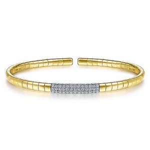 14K Yellow Gold Cuff Bracelet with Diamond Pavé Station