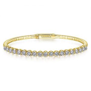 14K Yellow Gold Cuff Bracelet with Pavé Diamond Bar