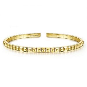 14K Yellow Gold Metal Bead Station Cuff Bracelet