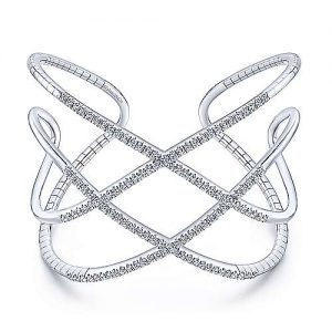 Open 14K White Gold Wide Diamond Cuff Bangle