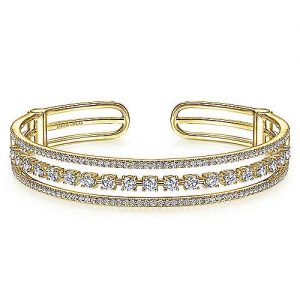14K Yellow Gold Three Row Diamond Cuff Bracelet