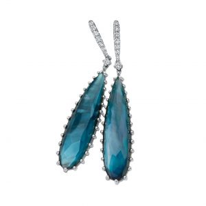 Tear Shaped 18k White Gold Diamond Earring With London Blue Topaz