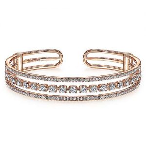 14K Rose Gold Three Row Diamond Cuff Bracelet