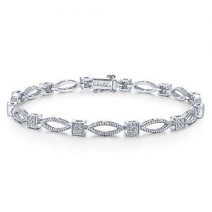 14K White Gold Twisted Rope Link Tennis Bracelet with Pavé Diamond Cube Spacers