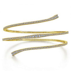 14K Yellow Gold Asymmetrical Criss Cross Diamond Bangle