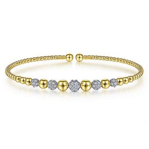 14K Yellow-White Gold Bujukan Bead Cuff Bracelet with Pavé Diamond Stations