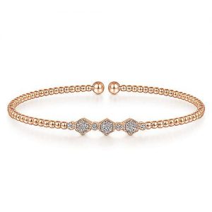 14K Rose Gold Bujukan Bead Cuff Bracelet with Cluster Diamond Hexagon Stations
