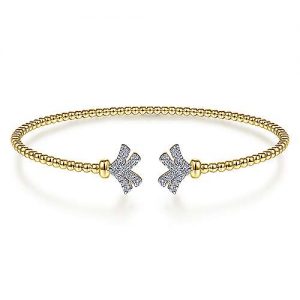 14K Yellow Gold Bujukan Split Cuff Bracelet with Diamond Pavé Fan Caps
