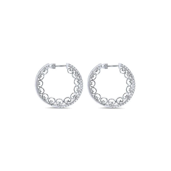 Hoop Earrings: Hoops loop from the front of the earlobe to the back. The most usual form is round but hoop earrings can also be oval, square, or triangle. They can be small or really large - the larger they are, the more dramatic the effect. Larger, ornate hoops are often referred to as gypsy hoops and are associated with a boho look.
